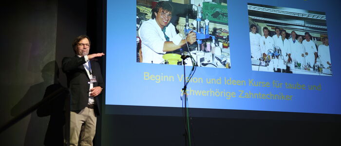 In den letzten 25 Jahren wurden beim Deaf Dental Workshop über 170 Veranstaltungen mit mehr als 1800 Teilnehmern durchgeführt. Auch in diesem Jahr reisten über 70 gehörlose Zahntechniker aus Deutschland und dem Ausland an, darunter Teilnehmer aus der Ukraine, Russland, Belarus, Litauen, Österreich, Indien und Japan. „Drei Tage lang gab es Fachvorträge und Zahntechnikfirmen stellten ihre Produkte vor. Themen waren unter anderem der Einsatz von 3D-Druckern, CAD/ CAM und Neuheiten im Bereich Implantate“, erklärt Thorwarth.