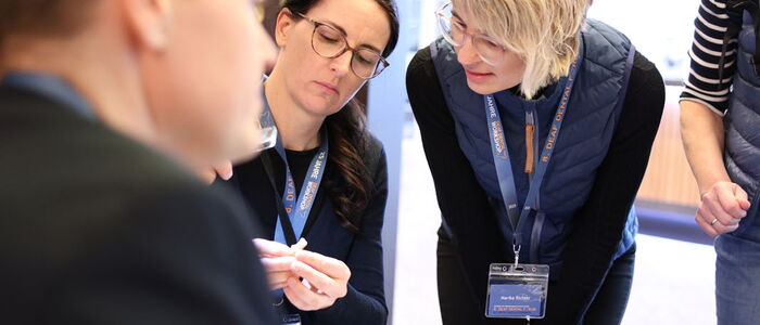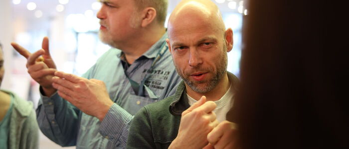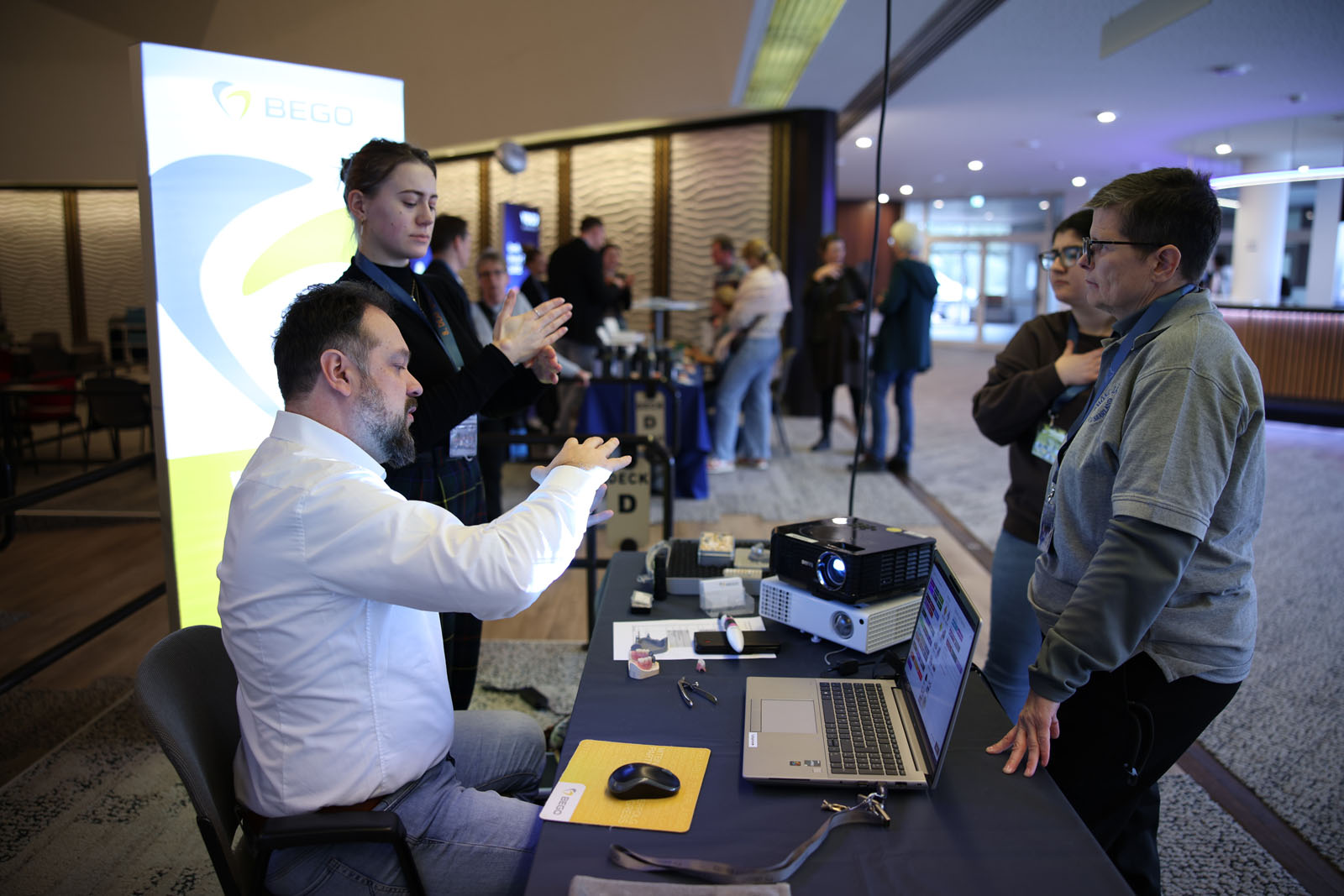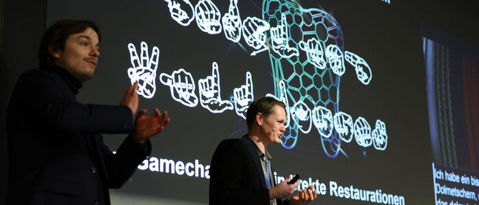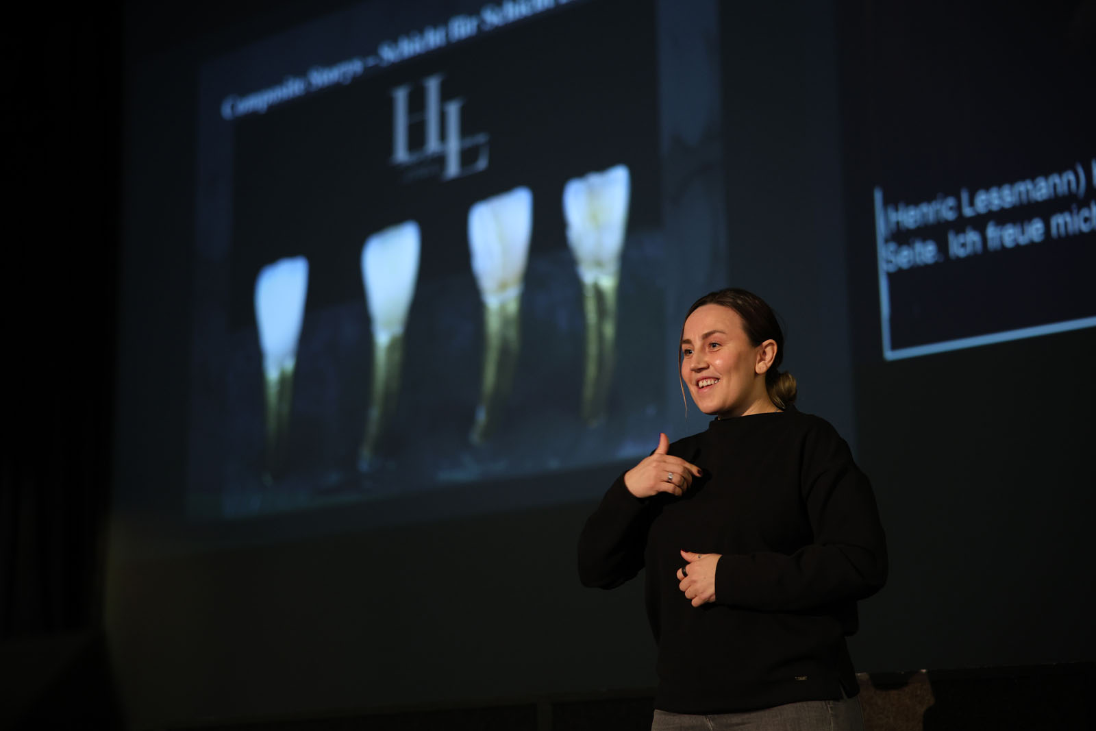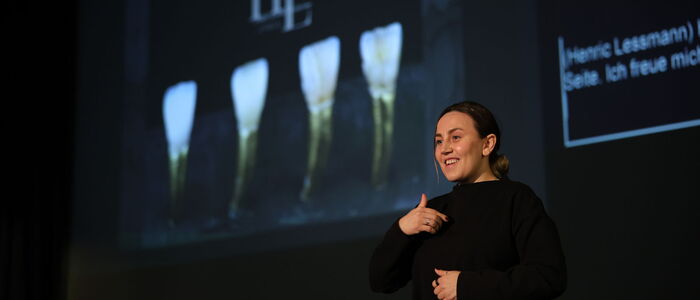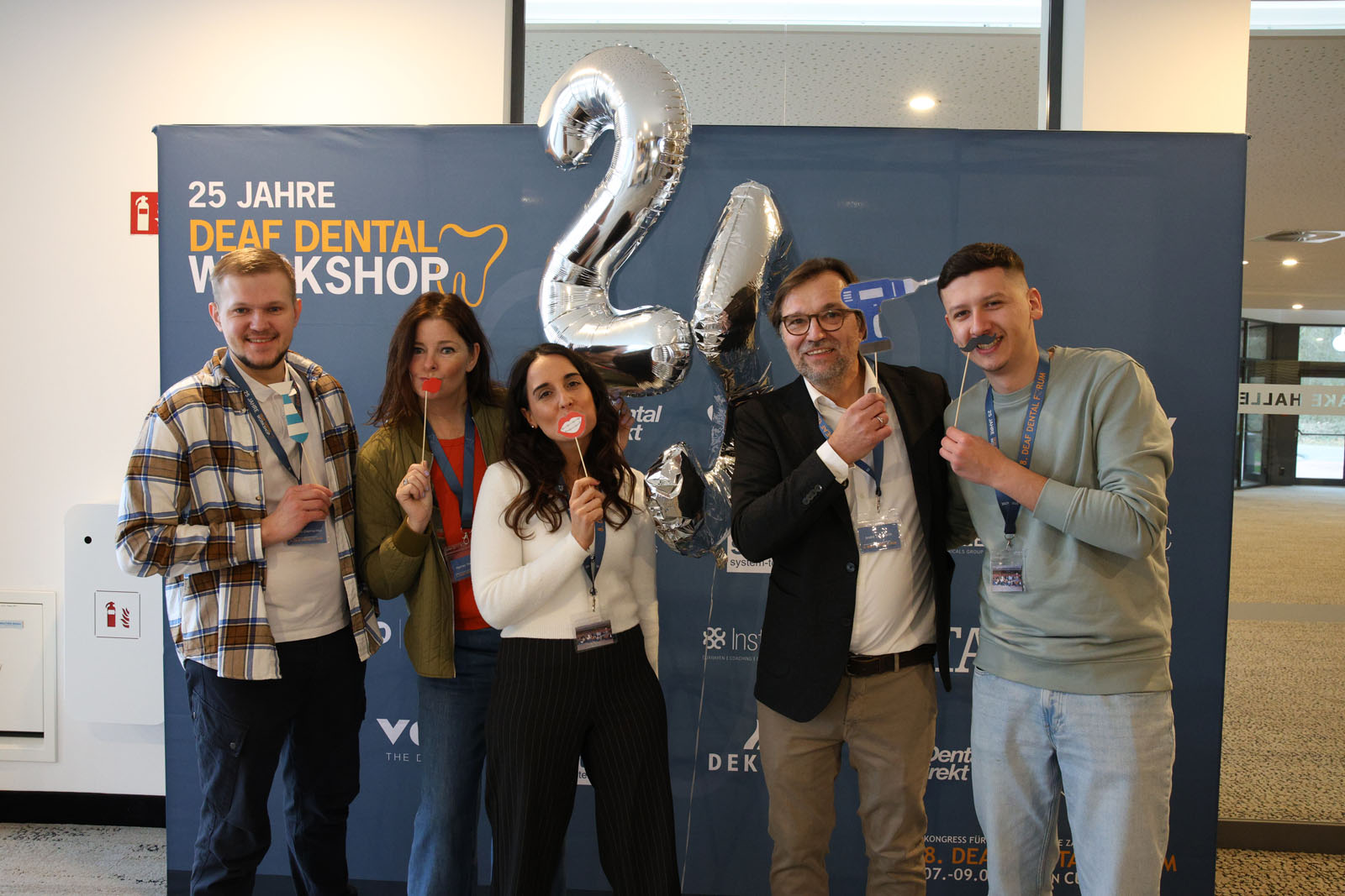 Damit alle Inhalte verständlich sind, sorgen vier Gebärdensprachdolmetscher und zwei Schriftdolmetscher für eine barrierefreie Kommunikation in nationaler und internationaler Gebärdensprache sowie in Schriftform. Zusätzlich unterstützen 15 studierende Gebärdensprachdolmetscher der Universität Hamburg die Fachberatungen an den Infoständen der Dentalfirmen. „Die Studierenden sammeln bei uns wertvolle Praxiserfahrung für ihre Zukunft“, so Thorwarth. Mit seinem Engagement verfolgt er ein klares Ziel: „Ich wünsche mir, dass alle gehörlosen Zahntechniker die Chance auf einen barrierefreien