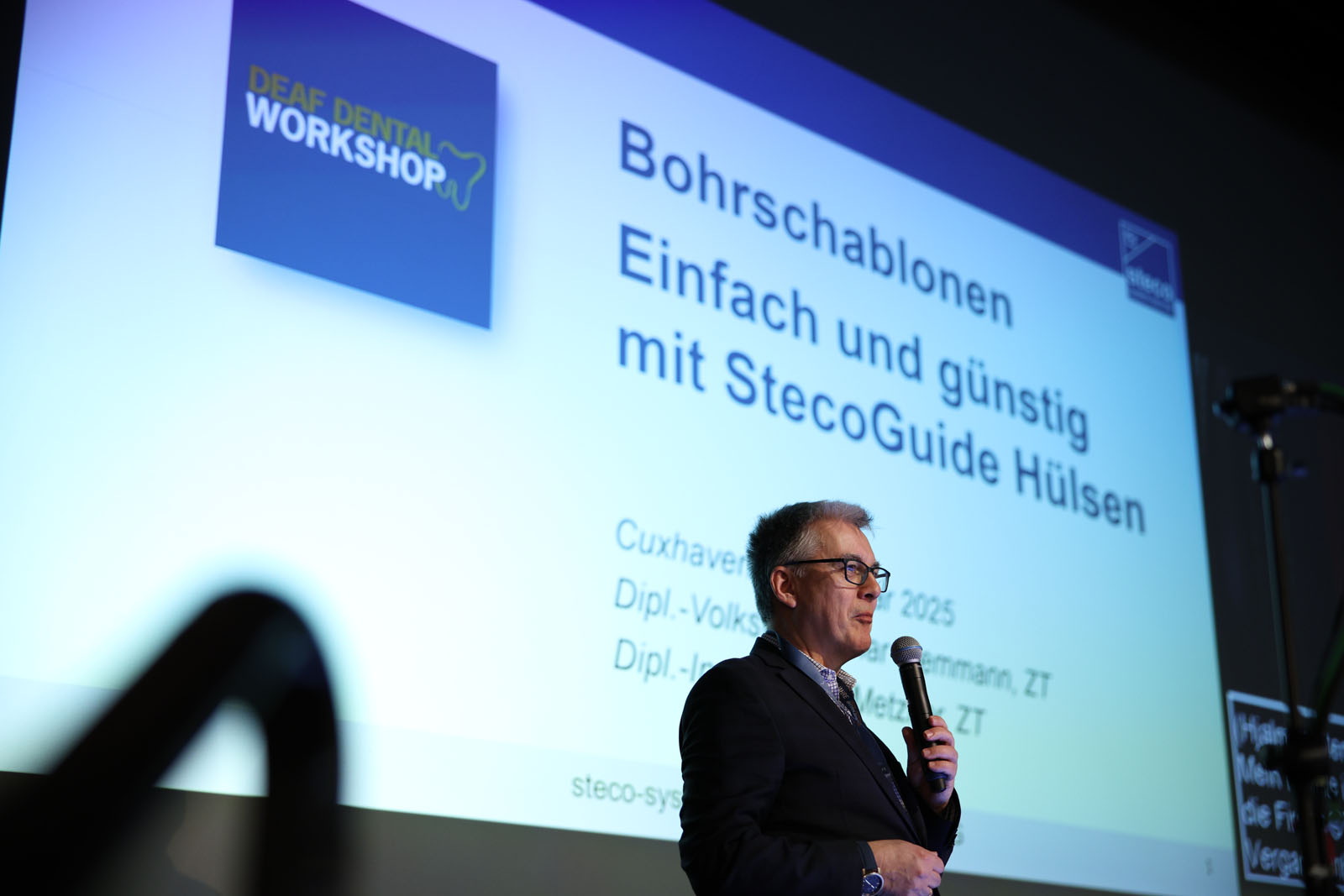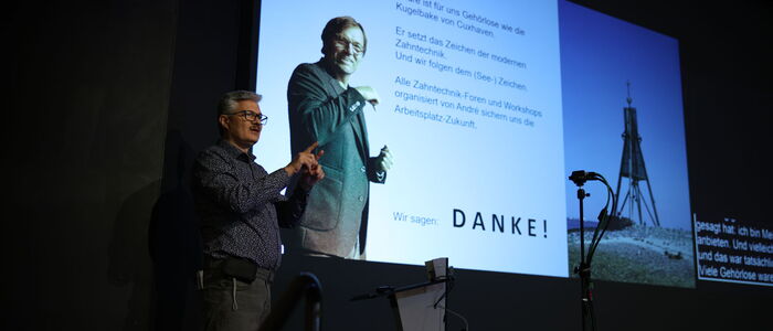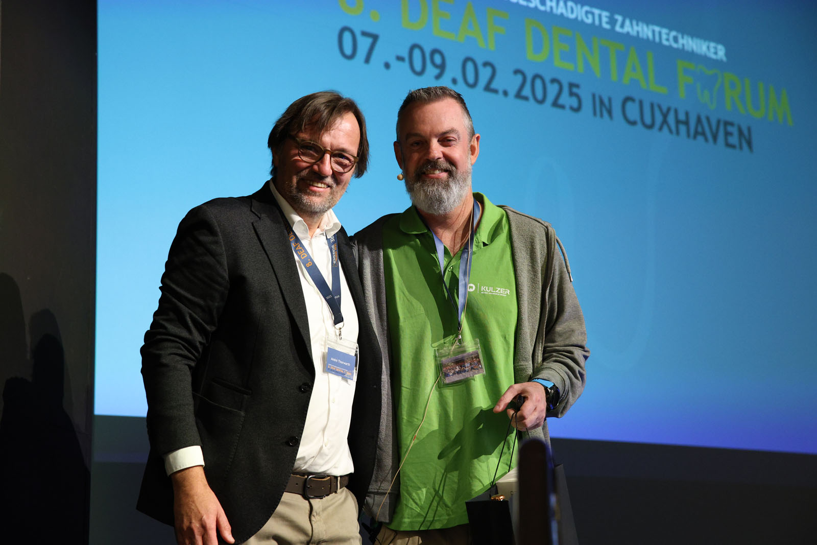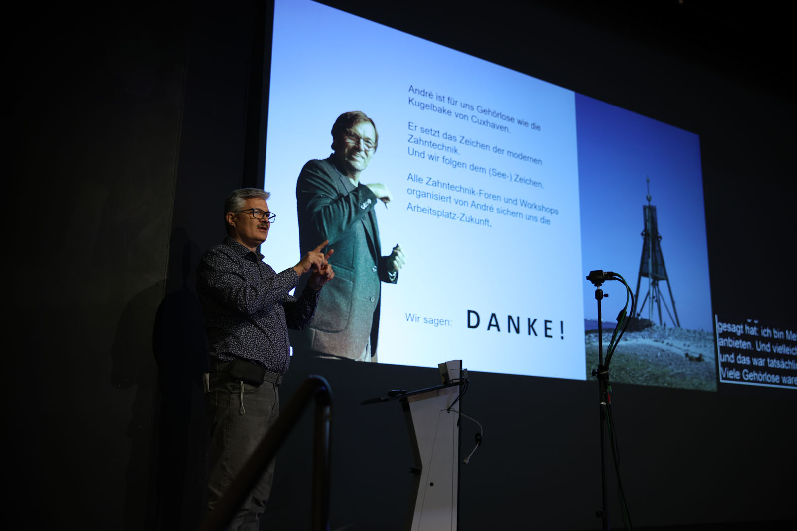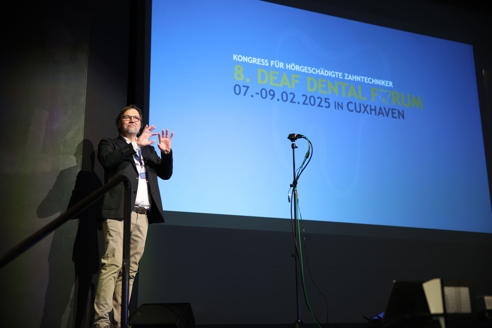 Trotz über 120 Teilnehmern herrschte eine ungewohnte Stille – denn zum achten Mal fand hier das „Deaf Dental Forum“ für taube und schwerhörige Zahntechniker statt. Zahntechnikermeister André Thorwarth führt seit 1999 ein eigenes Dentallabor in Cuxhaven und engagiert sich seit über 30 Jahren in der Weiterbildung. Sein Angebot richtet sich speziell an taube und schwerhörige Zahntechniker. In seinem Schulungszentrum, dem Deaf Dental Workshop, bietet er regelmäßig Fortbildungen an.