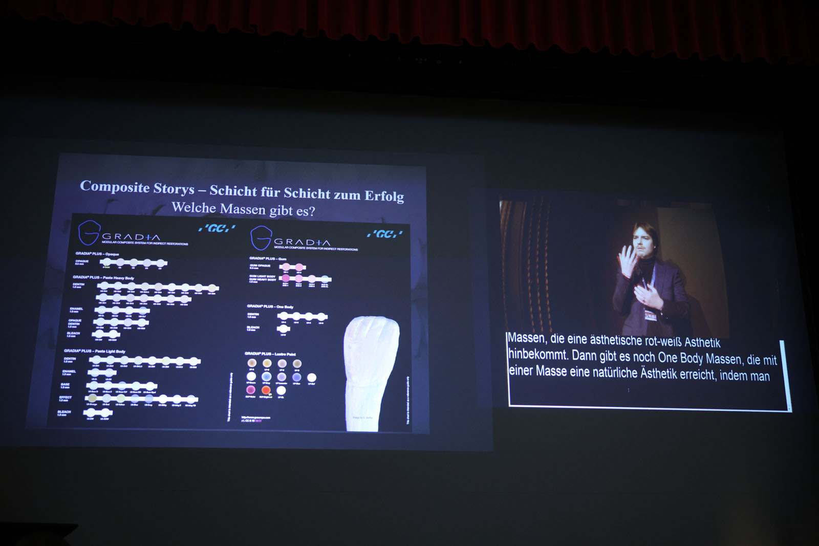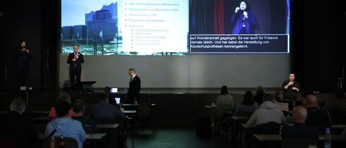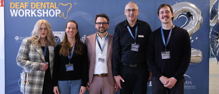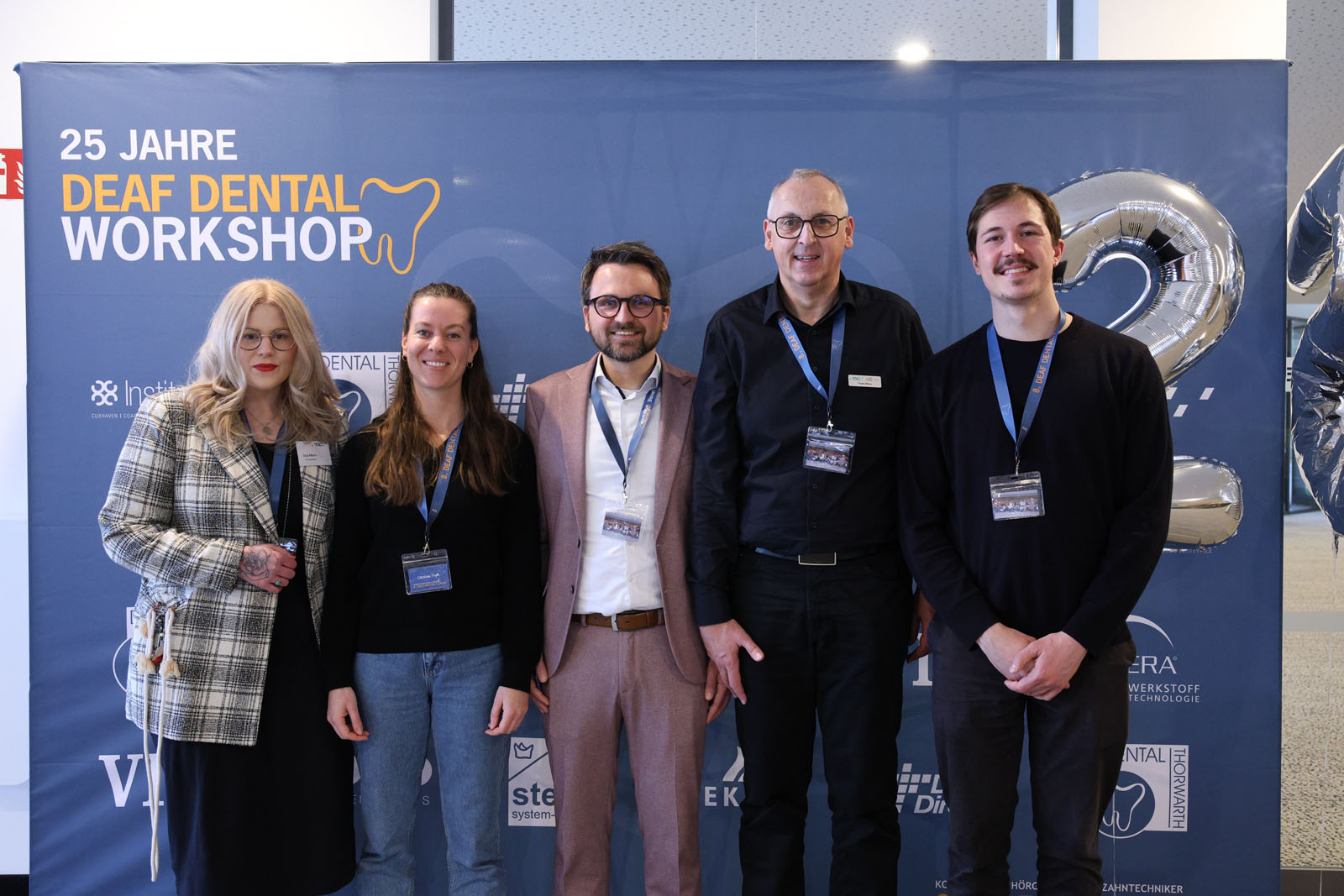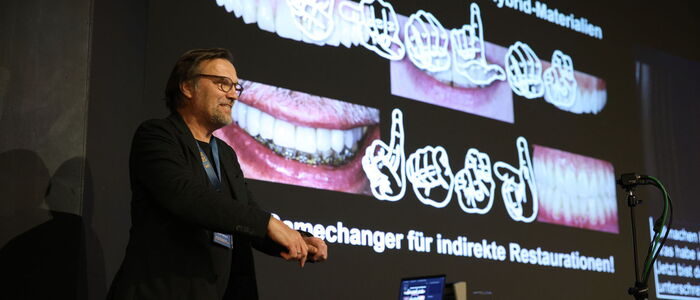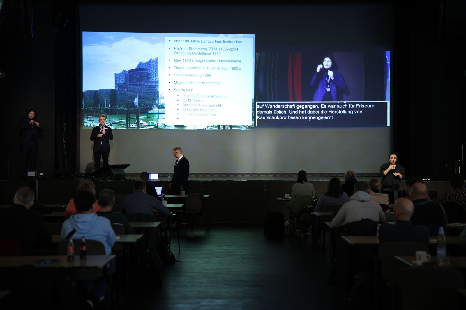 Damit alle Inhalte verständlich sind, sorgen vier Gebärdensprachdolmetscher und zwei Schriftdolmetscher für eine barrierefreie Kommunikation in nationaler und internationaler Gebärdensprache sowie in Schriftform. Zusätzlich unterstützen 15 studierende Gebärdensprachdolmetscher der Universität Hamburg die Fachberatungen an den Infoständen der Dentalfirmen. „Die Studierenden sammeln bei uns wertvolle Praxiserfahrung für ihre Zukunft“, so Thorwarth. Mit seinem Engagement verfolgt er ein klares Ziel: „Ich wünsche mir, dass alle gehörlosen Zahntechniker die Chance auf einen barrierefreien