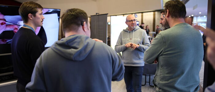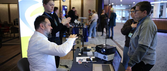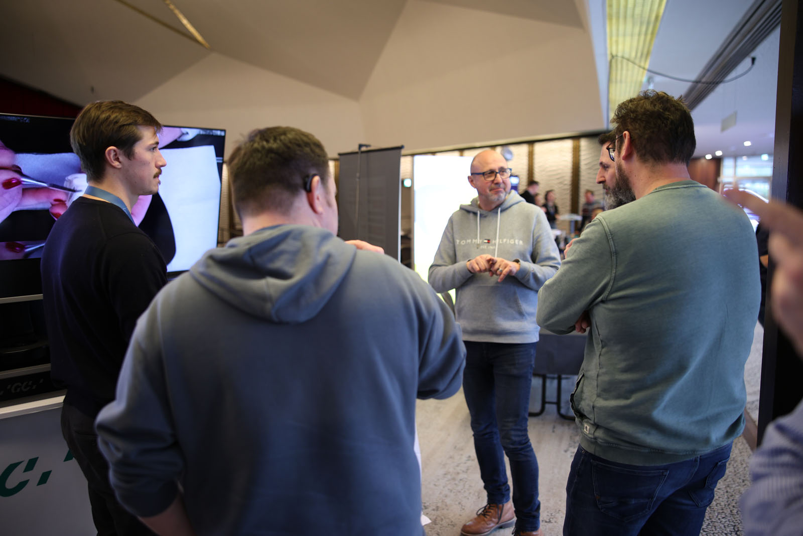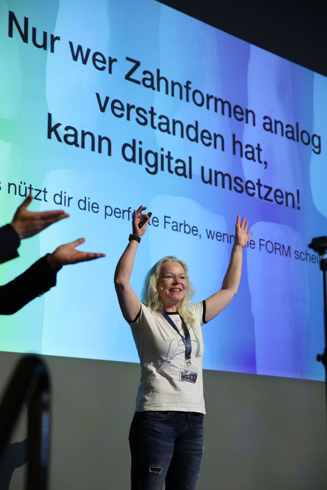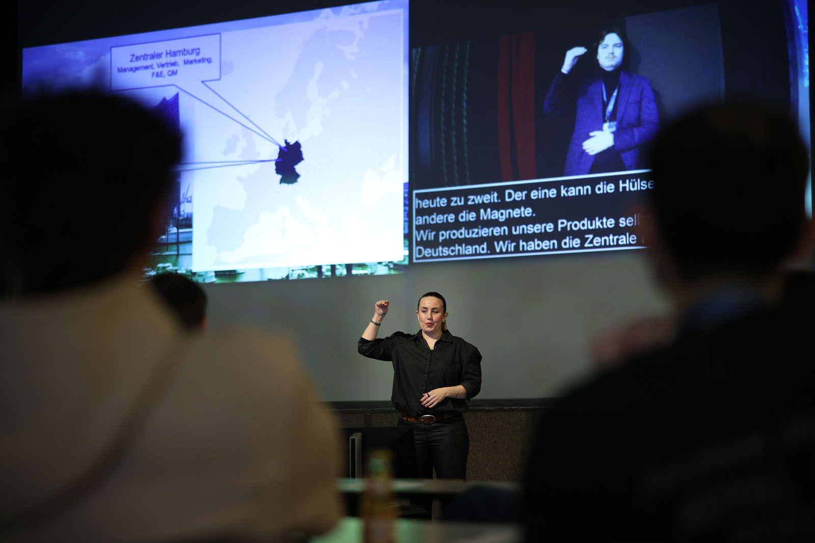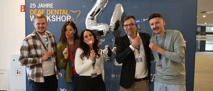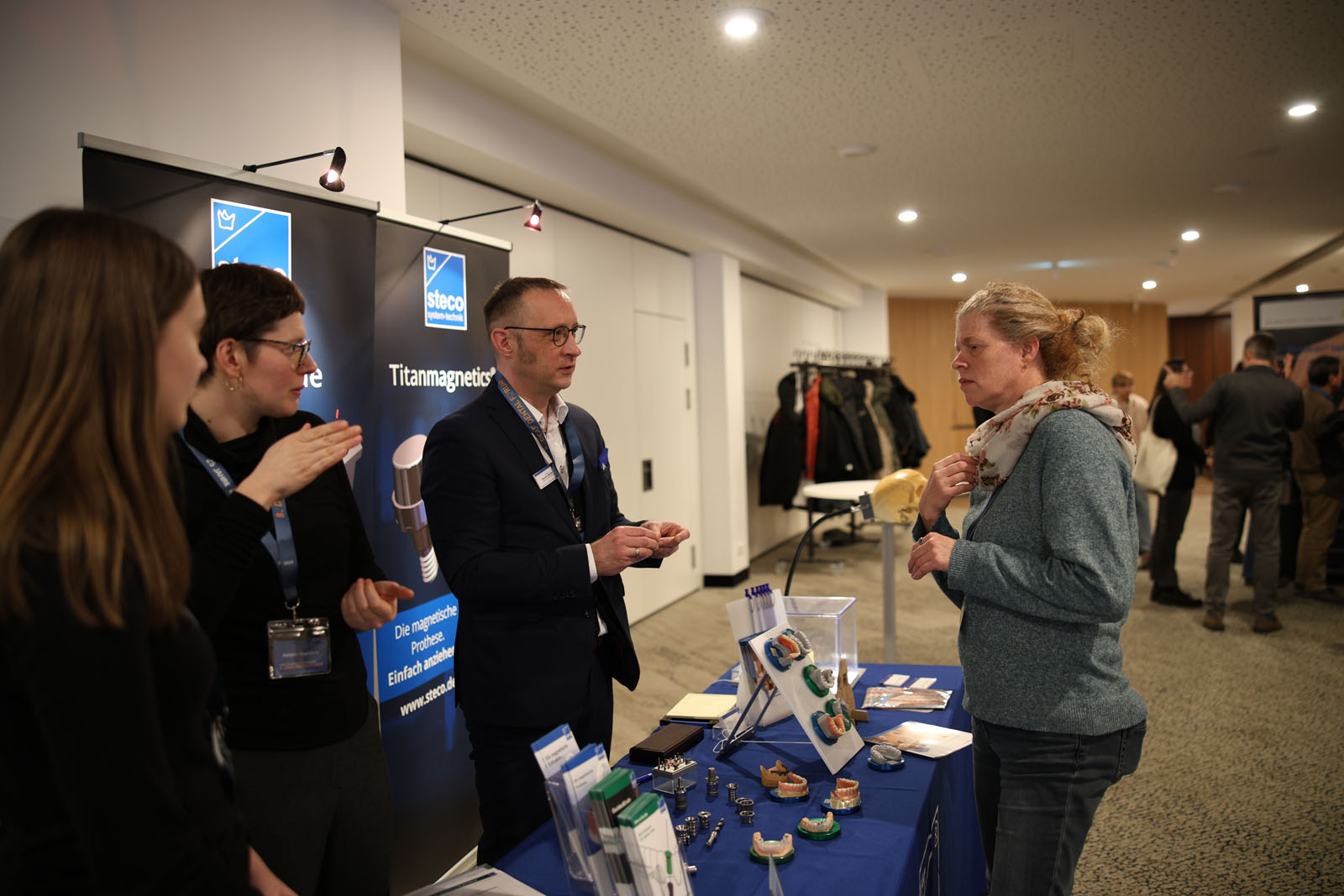 Damit alle Inhalte verständlich sind, sorgen vier Gebärdensprachdolmetscher und zwei Schriftdolmetscher für eine barrierefreie Kommunikation in nationaler und internationaler Gebärdensprache sowie in Schriftform. Zusätzlich unterstützen 15 studierende Gebärdensprachdolmetscher der Universität Hamburg die Fachberatungen an den Infoständen der Dentalfirmen. „Die Studierenden sammeln bei uns wertvolle Praxiserfahrung für ihre Zukunft“, so Thorwarth. Mit seinem Engagement verfolgt er ein klares Ziel: „Ich wünsche mir, dass alle gehörlosen Zahntechniker die Chance auf einen barrierefreien